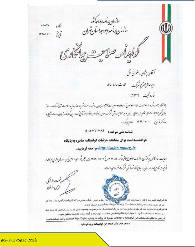 گواهینامه صلاحیت پیمانکاری